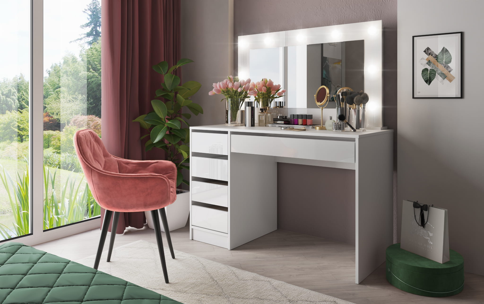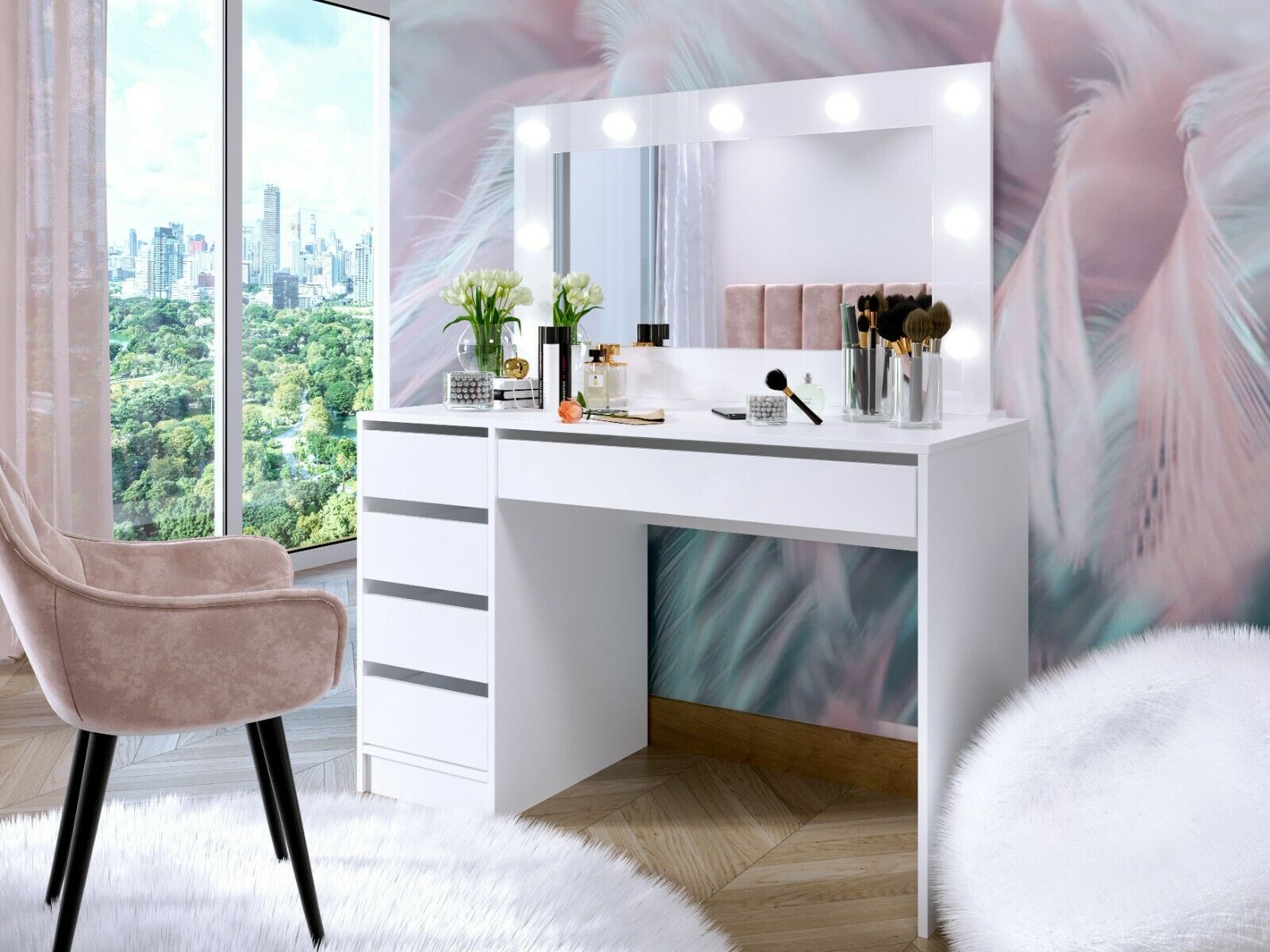 Der perfekte Hollywood-Schminktisch: Frisiertisch MADI mit LED-Spiegel