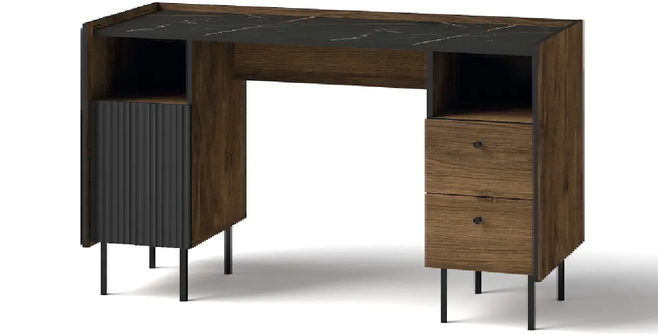 Schreibtisch NERO P9 | mit Lamellen | Nussbaum Warmia & Schwarz | Loft industrial