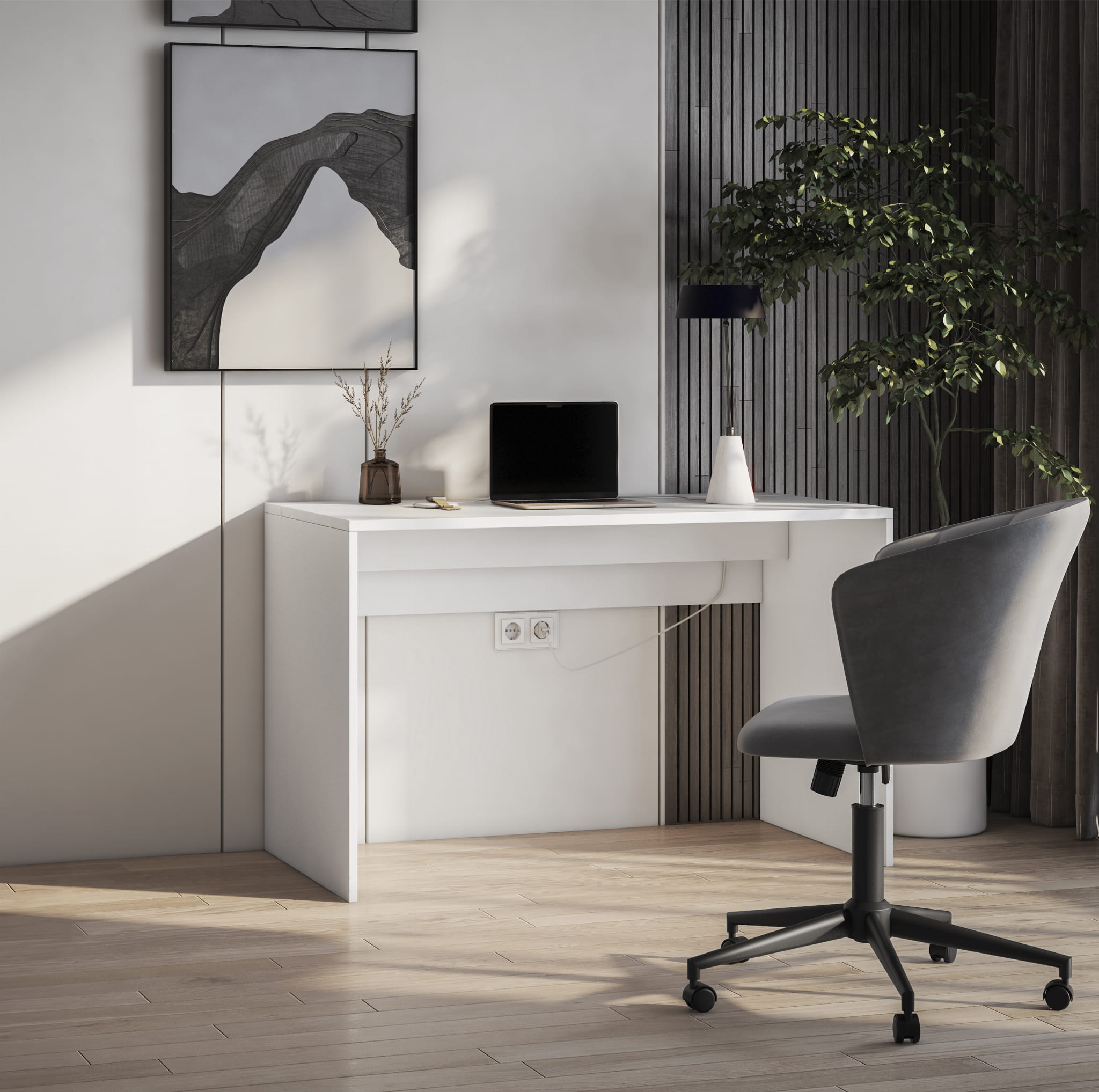 Der Schreibtisch Nevy ist eine moderne und funktionelle Lösung für Ihren Büroraum. Mit seinen Maßen von 120/140x60x75 Zentimetern bietet er Ihnen ausreichend Platz zum Arbeiten, ohne zu viel Raum einzunehmen. Der Nevy-Schreibtisch ist mit einem Kabelfach ausgestattet, das es Ihnen ermöglicht, elektrische Kabel ästhetisch zu verbergen und Ordnung in Ihrem Büro zu schaffen.
