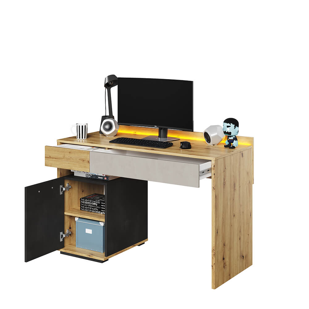 Schreibtisch QUBIC QB08 mit Tür, 2 Schubladen und LED Beleuchtung, Jugendzimmer