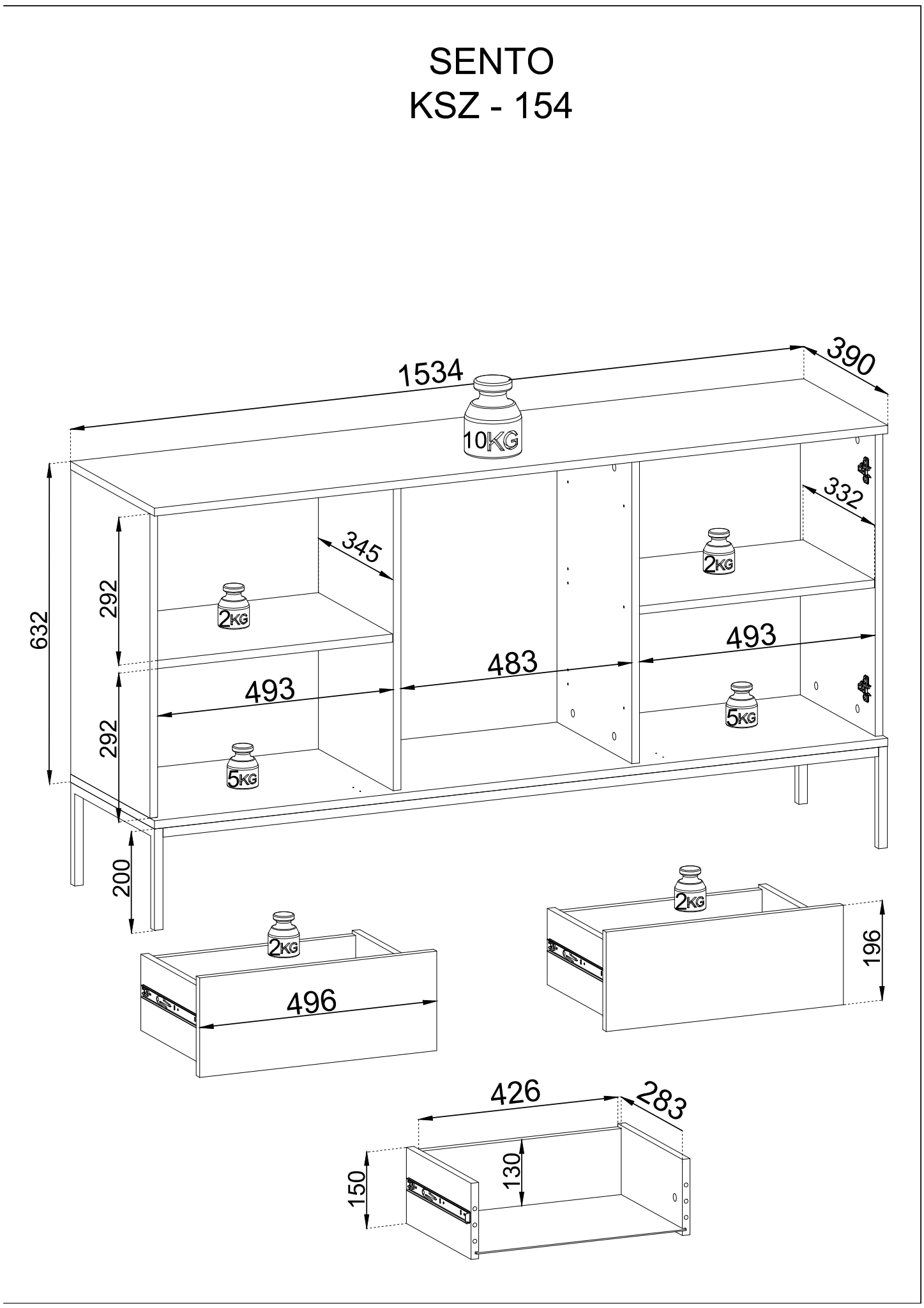 - Aufteilung: 2 Türen und 3 geräumige Schubladen (2D3S).