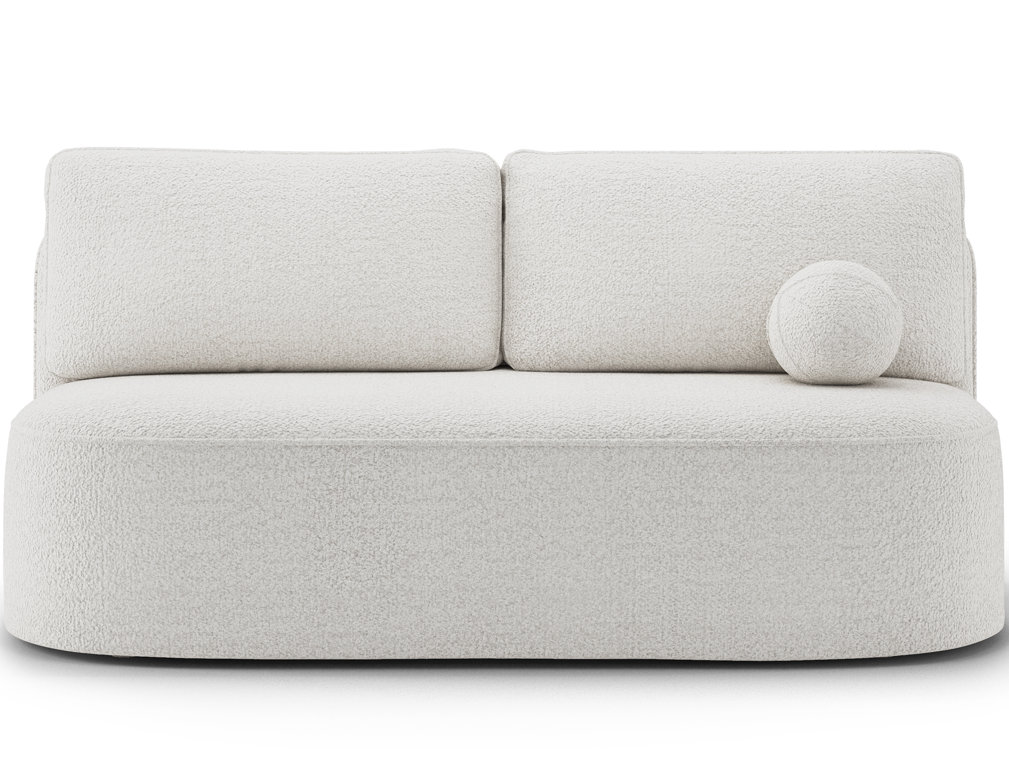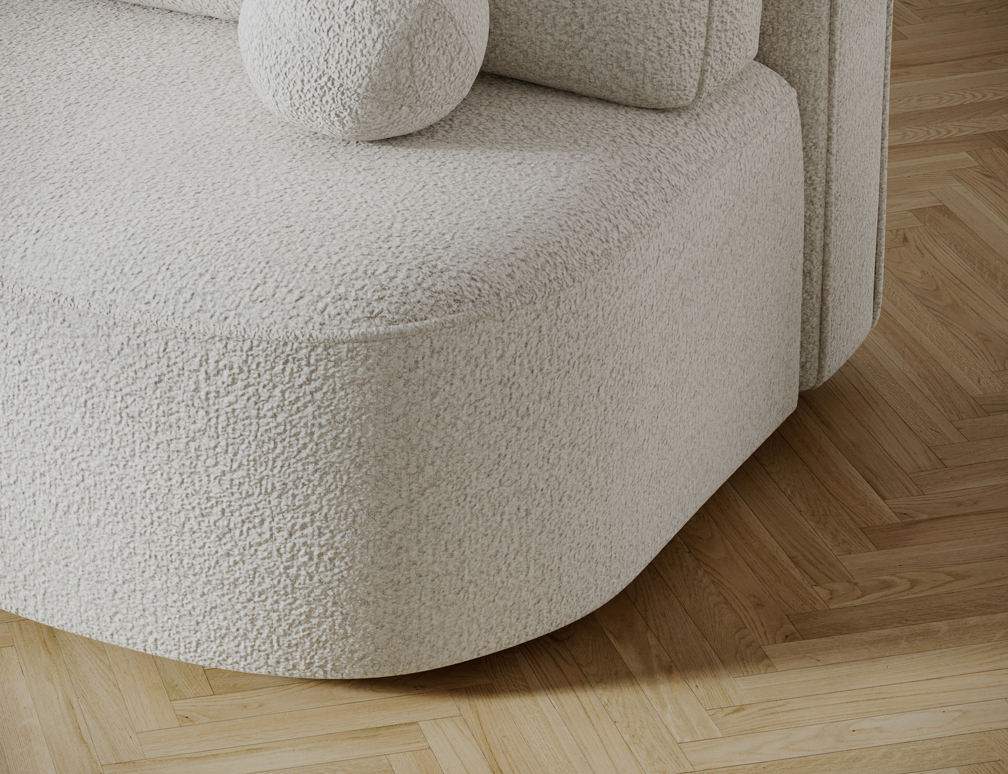 Dank des voll bezogenen Rückens ist das Sofa freistehend und kann flexibel im Raum platziert werden. Die Konstruktion aus Kiefernholz gewährleistet Stabilität und eine Belastbarkeit von bis zu 210 kg.