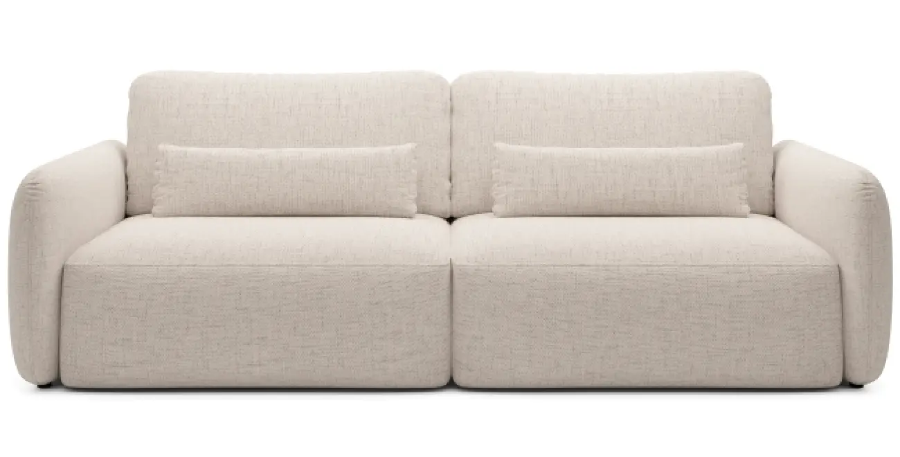 Das Schlafsofa MOSSA kombiniert modernes Design, das sich durch modische, abgerundete Formen auszeichnet, mit außergewöhnlicher Funktionalität. Es ist die ideale Lösung für das Wohnzimmer, da es tagsüber als elegantes Sofa und nachts als komfortables, vollwertiges Bett dient. Seine weichen Linien und sorgfältig ausgewählten Stoffe schaffen eine gemütliche Atmosphäre in jedem Interieur.
