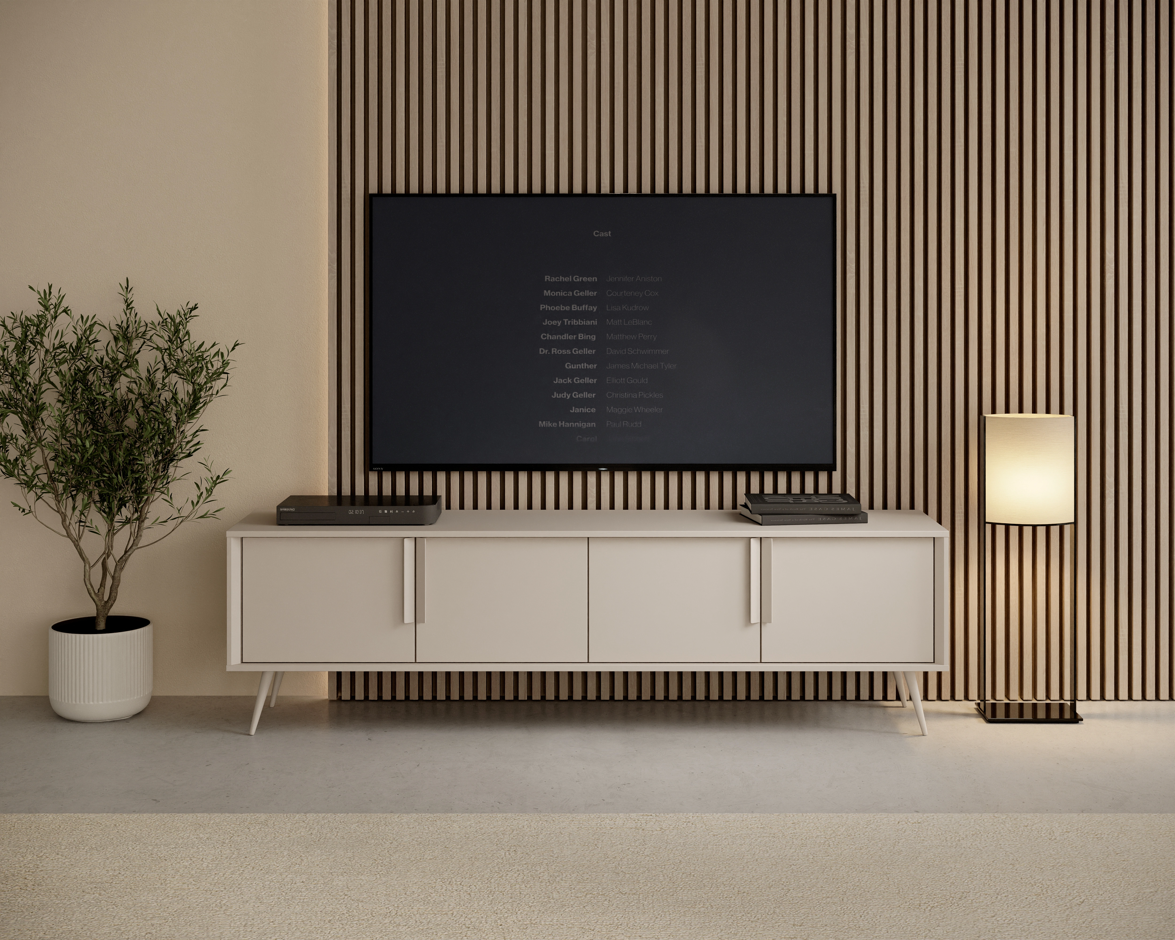 TV-Lowboard MAVERA 4-türig (186x54) Kaschmir, Soft-Close & Metallfüße