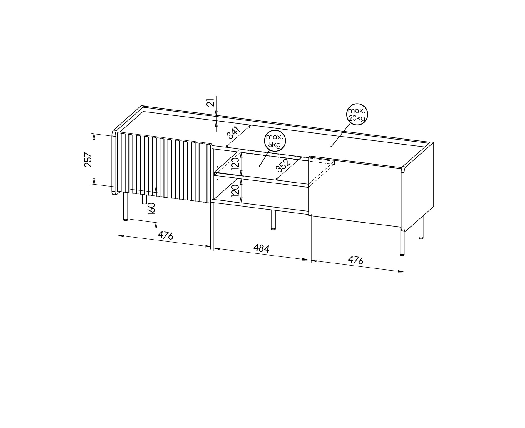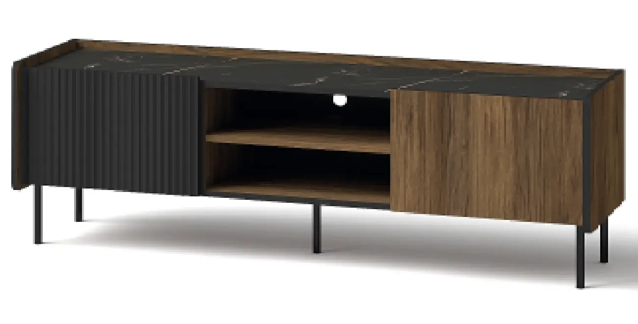 TV-Lowboard NERO P7 150 cm | mit Lamellen | Nussbaum Warmia & Schwarz | Loft industrial