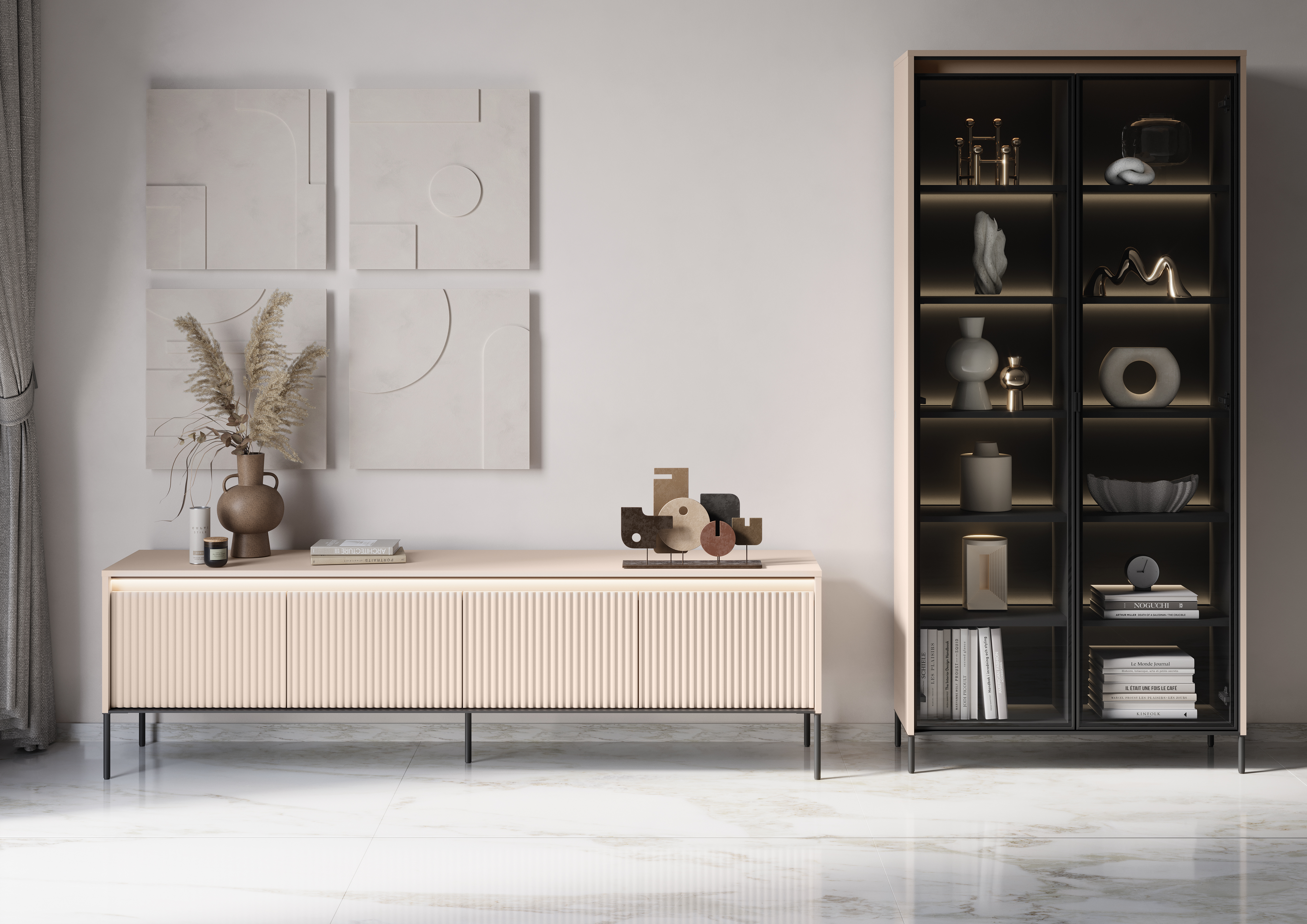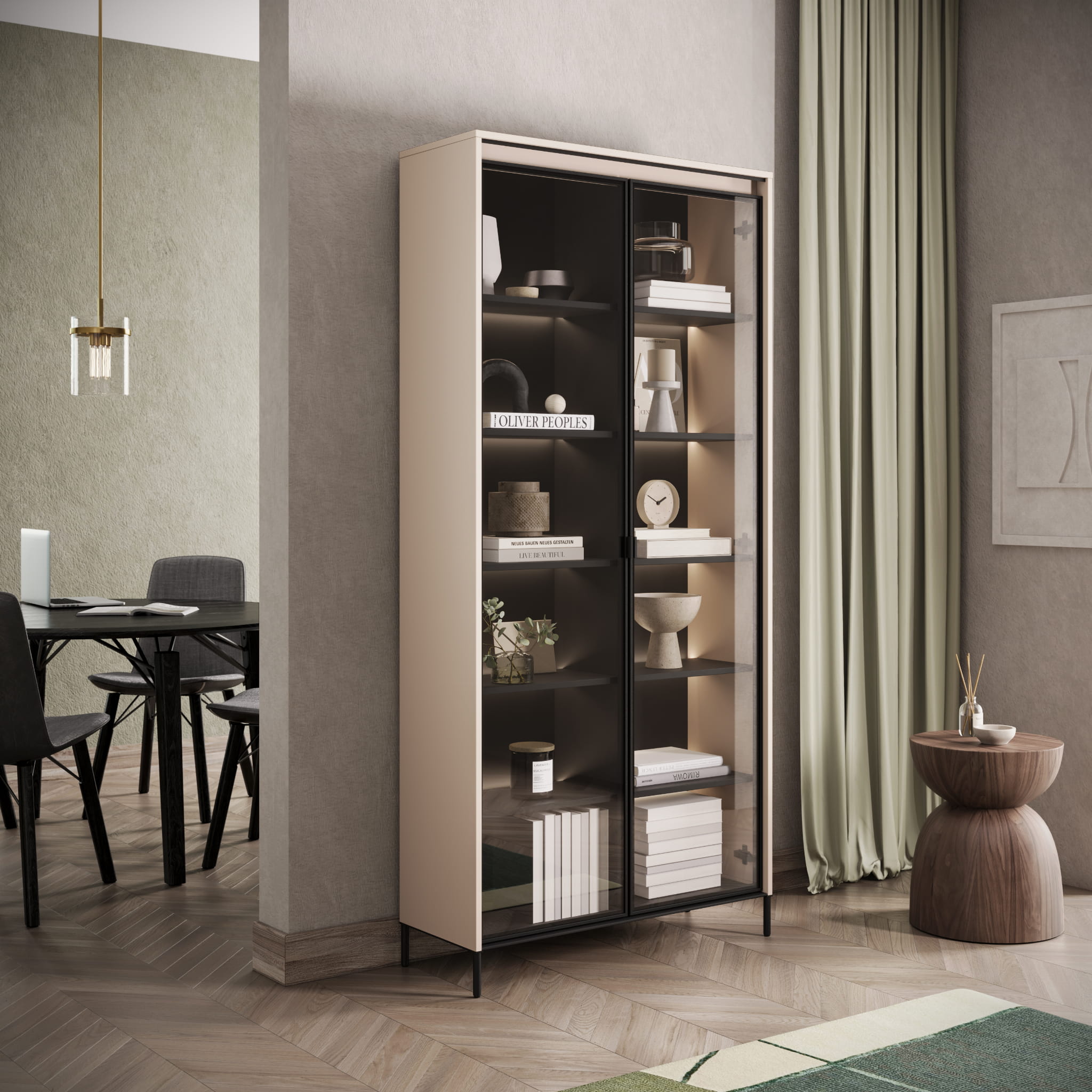 Vitrine TREND TR-07 196cm Hoch – Sandbeige & Japandi – LED & Glas