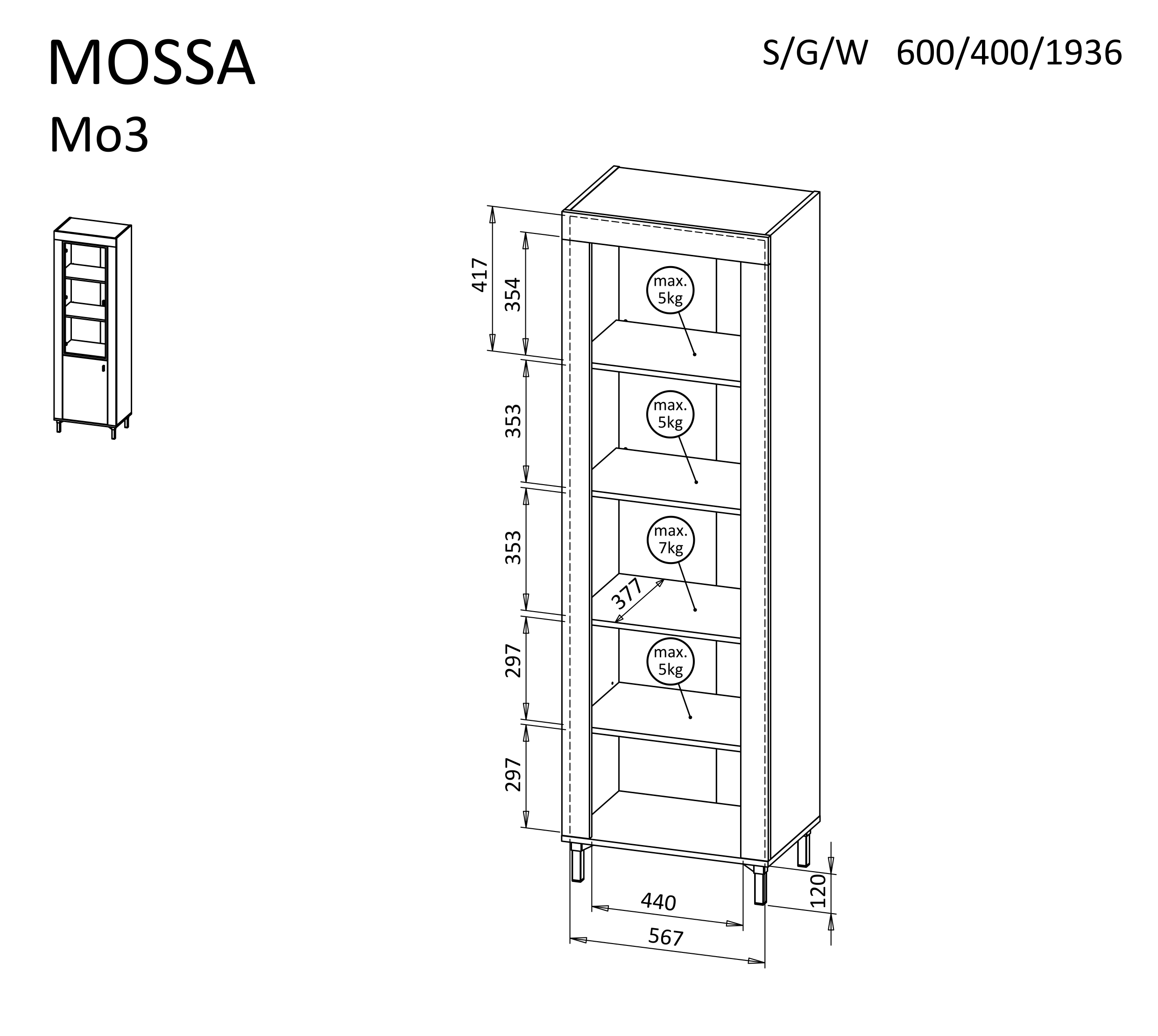 Vitrine mit LED-Beleuchtung Mossa MO3 Kaschmir