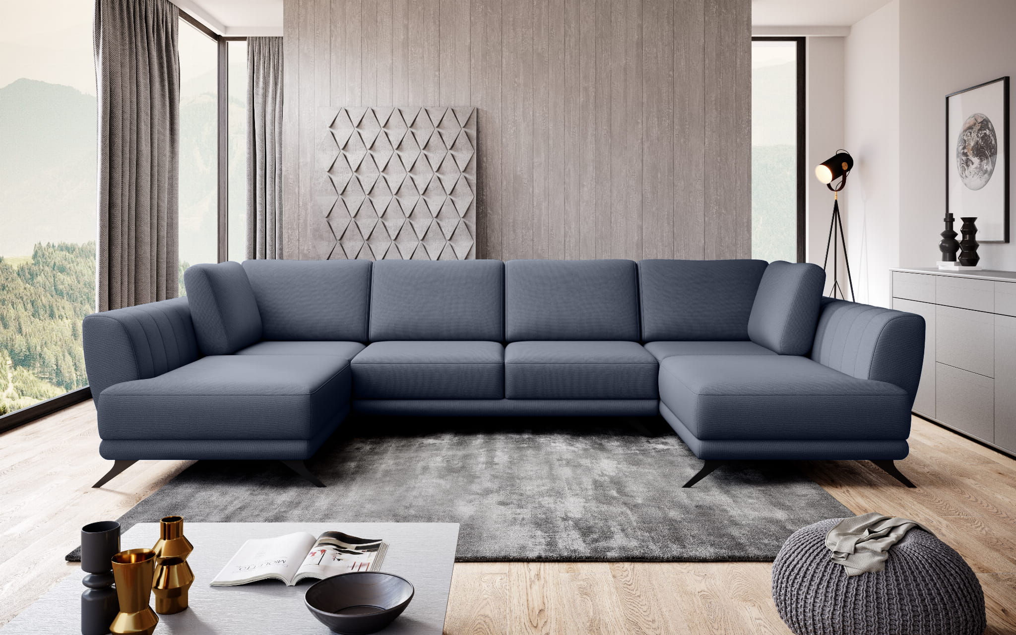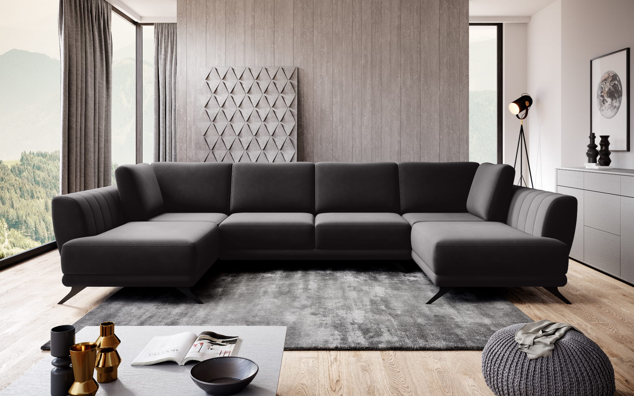 Larco U-förmiges Ecksofa mit Schlaffunktion - tagsüber ein elegantes und modernes Möbelstück, nachts ein vollwertiges, bequemes Bett. Dank ihm können Ihre Gäste gut schlafen, denn das Ecksofa bietet im ausgeklappten Zustand eine große Liegefläche: 320 x 214 Zentimeter. Lassen Sie Ihre Gäste nie wieder in einem Hotel übernachten! Der Larco lässt sich sehr leicht aufklappen, was er dem automatischen DL-Mechanismus verdankt. Dieser einfache Mechanismus wird durch einfaches Herausschieben eines der Eckstücke und anschließendes Aufstellen der Rückenlehnen bedient, so dass ein doppelter Schlafplatz entsteht. Das Ecksofa bietet nicht nur eine zusätzliche Schlafgelegenheit, sondern auch einen Wäschecontainer, in dem Sie Kissen und Decken platzsparend im Schrank verstauen können. Nutzen Sie unser Ecksofa Larco als Blickfang in Ihrem Wohnzimmer oder als Sitzgelegenheit in Ihrem Gästezimmer. Mit einem multifunktionalen Möbelstück wie dem Larco erhalten Sie eine fantastische Ergänzung für Ihr Zuhause für eine Vielzahl von Zwecken. Sitzen, Schlafen, Aufbewahren - ein Traum für Platzsparer.