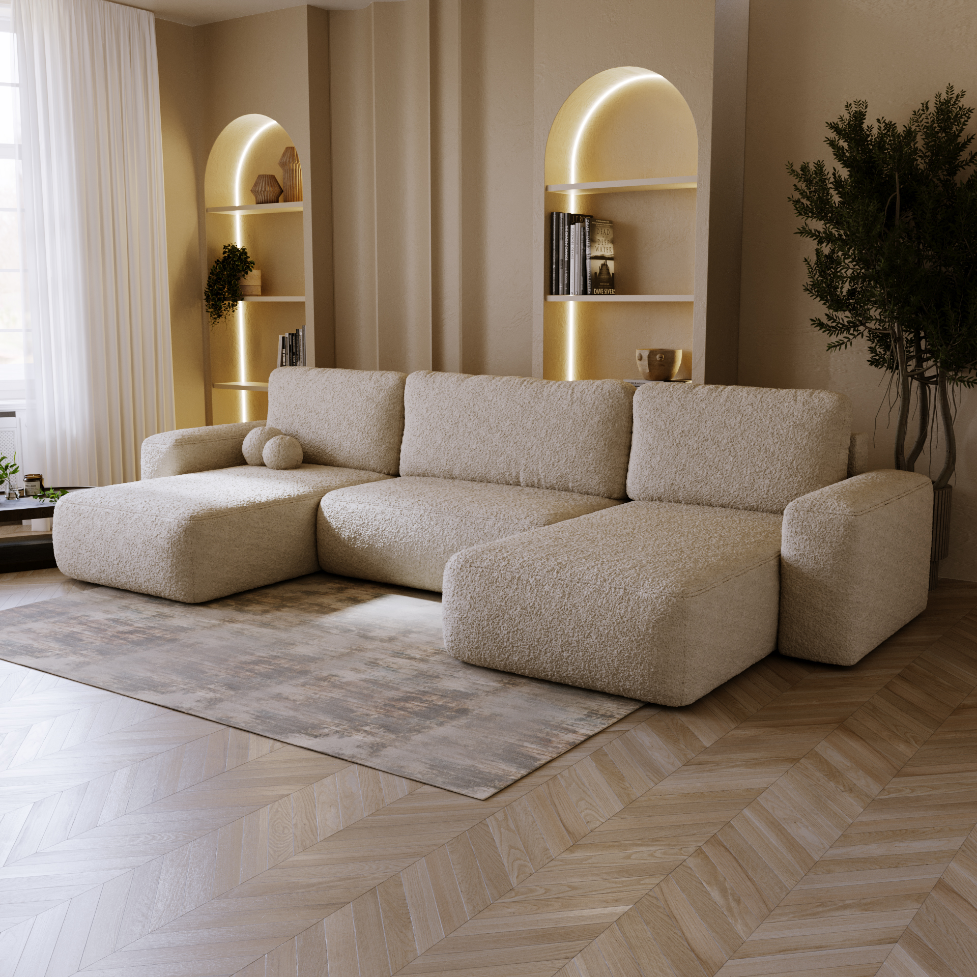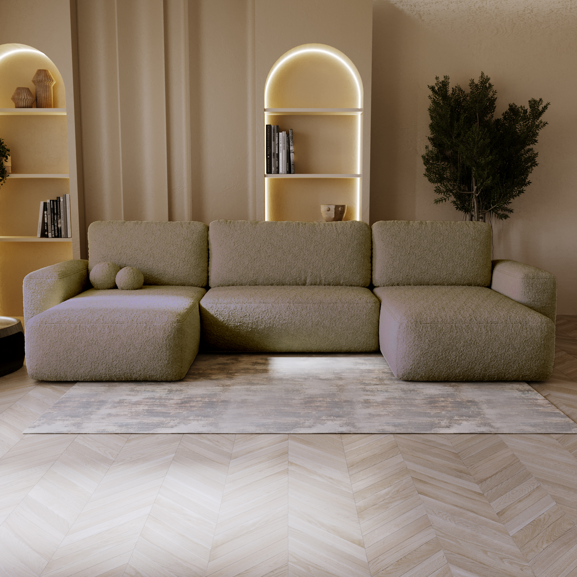 Wohnlandschaft Nola U – U-Form Ecksofa in Bouclé