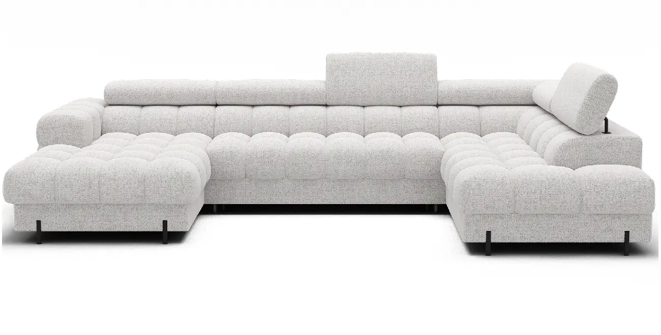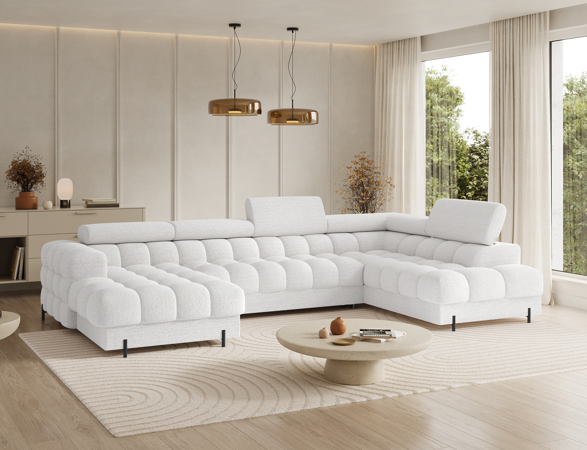 Wohnlandschaft U-Form FERIA | Bouclé & Velvet | Schlaffunktion & Bettkasten